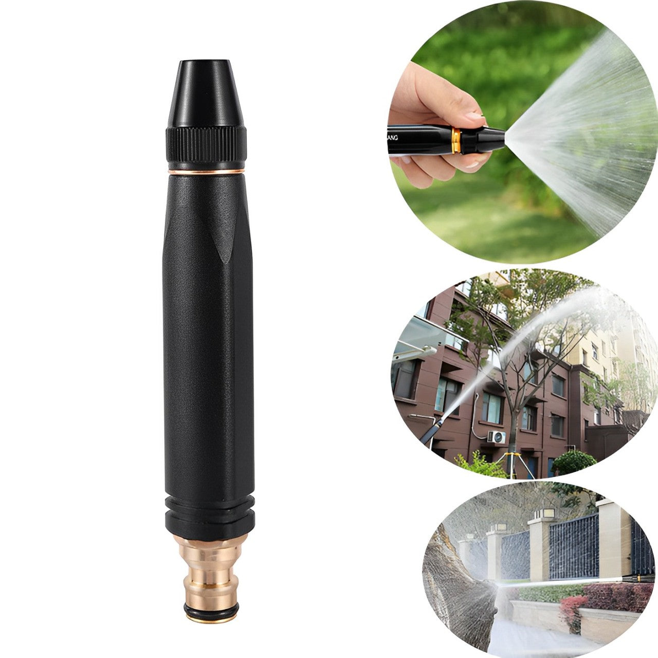 - High Pressure Water Nozzle for Hose Pipe is a tool designed for outdoor cleaning purposes such as washing cars, patios, decks, and sidewalks.