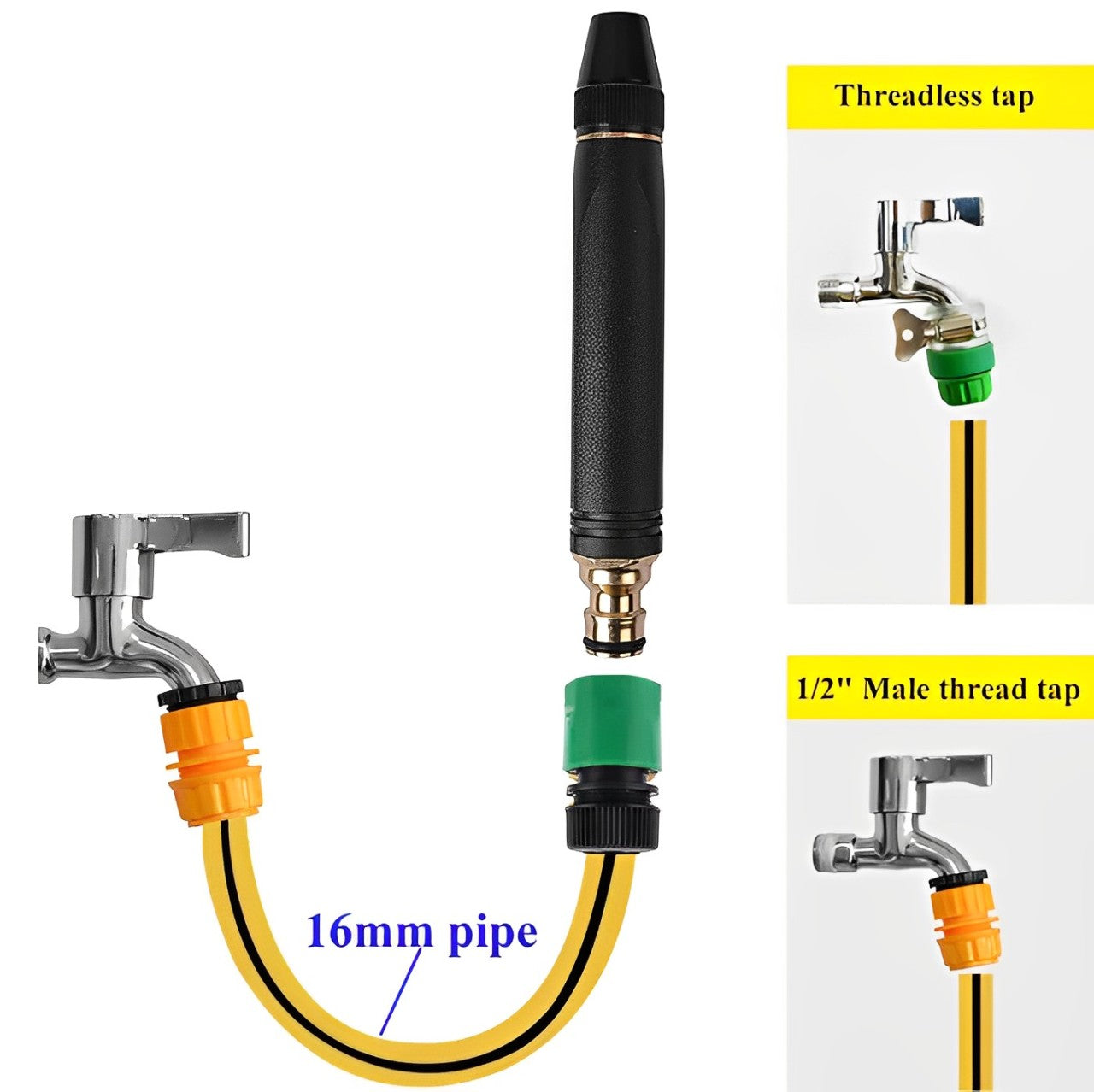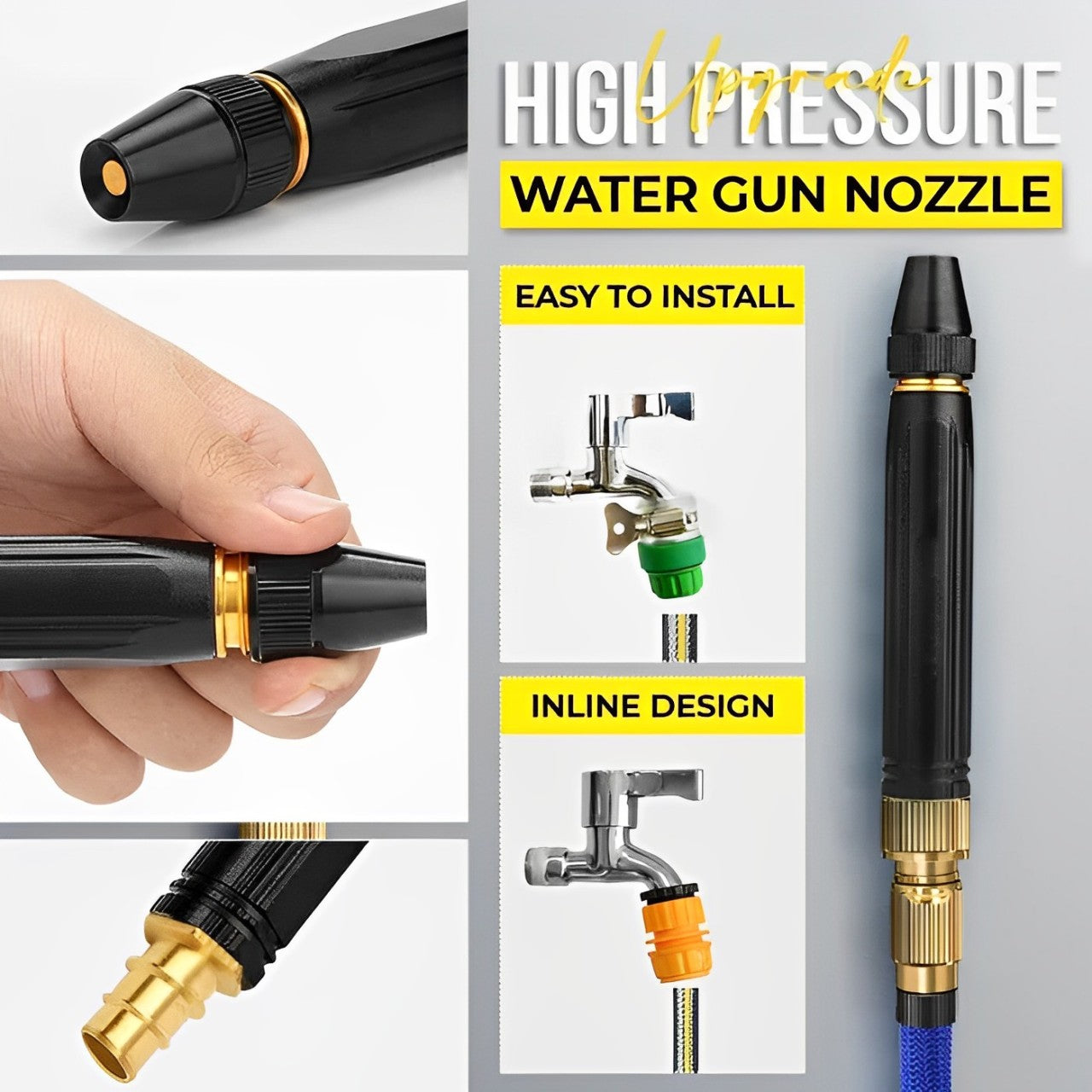 - The High Pressure Water Nozzle for Hose Pipe is designed to increase the water pressure up to 100 psi for efficient and fast cleaning.